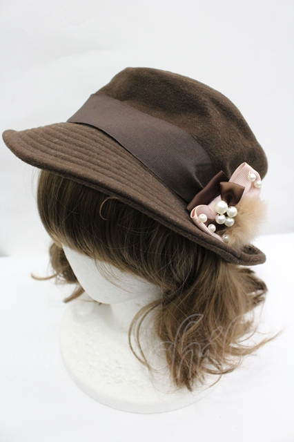 axes femme / ファーコサージュポークパイ ブラウン I-26-04-10-112-AX-AC-SA-ZI