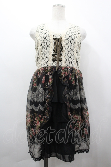axes femme / レースX花柄スリットチュニ M クロ I-26-04-10-054-AX-OP-SA-ZI