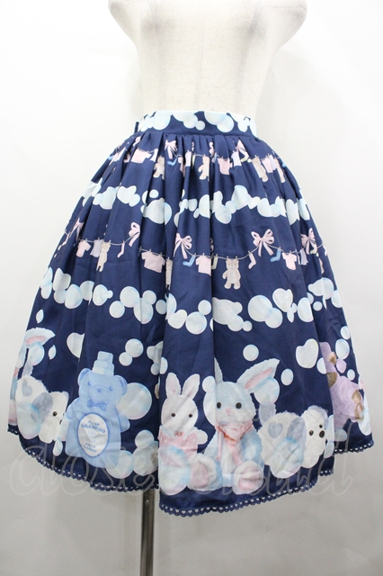 axes femme kawaii / ランドリー柄スカート ネイビー I-26-04-10-086-AX-SK-SA-ZI