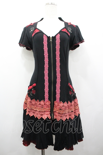 Ozz oneste / レースチャイナZIPワンピース 黒×赤 I-26-04-10-044-OO-OP-TE-ZI
