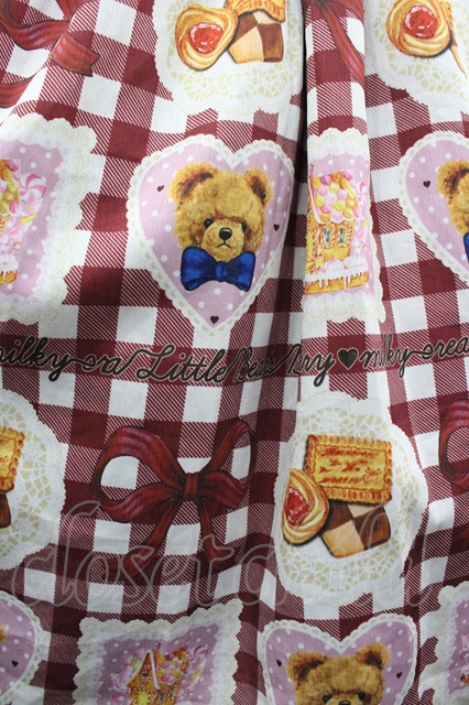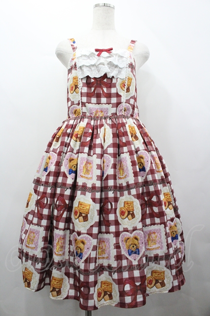 axes femme kawaii / ベアズベーカリー柄ジャンスカ M ボルドー I-26-04-10-071-AX-OP-SA-ZI