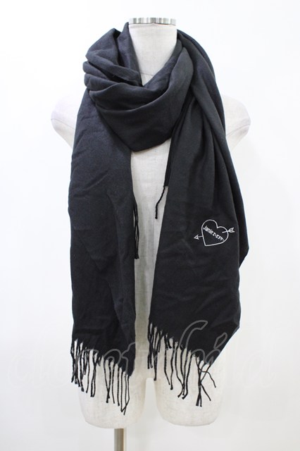Jamie エーエヌケー / ロゴ刺繍ストール ブラック H-26-04-17-1006-LO-ZA-NS-ZH
