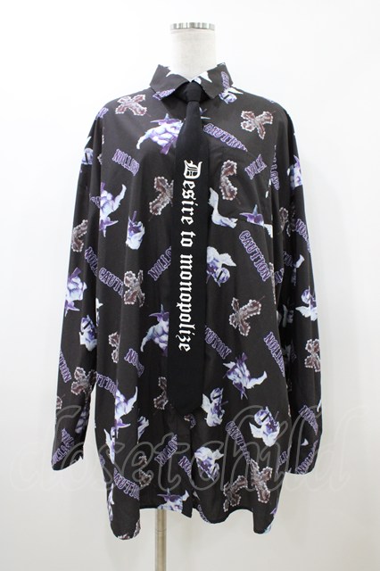 Jamieエーエヌケー / エンジェルプリントBIGシャツ M ブラック H-26-04-17-1053-0-BL-NS-ZH