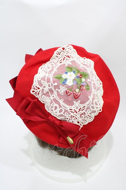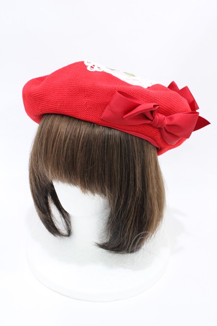 Hoshibako Works / ストロベリー・リボンブーケ いちご刺繍ベレー 直径:25cm/頭周り:57cm レッド H-26-04-17-1005-LO-AC-NS-ZH [2100030000091874-H-26-04-17-1005-LO-AC-NS-ZH]