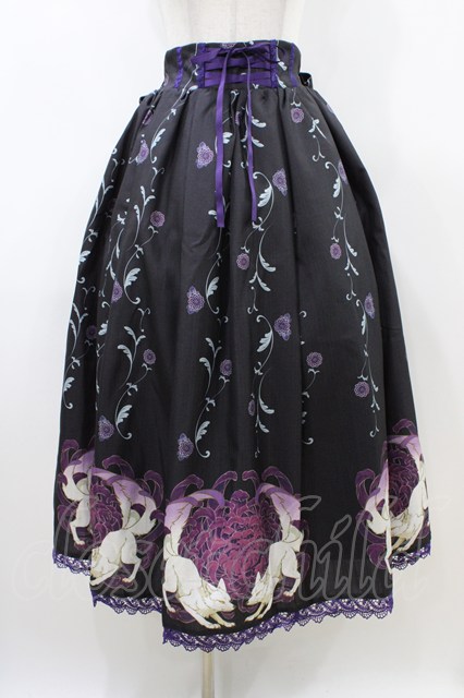 Chalmiere / 菊と狐柄スカート M ブラック/パープル H-26-04-17-1021-0-SK-NS-ZH [2100030000091891-H-26-04-17-1021-0-SK-NS-ZH]