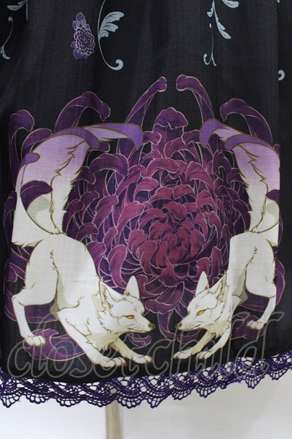 Chalmiere / 菊と狐柄スカート M ブラック/パープル H-26-04-17-1021-0-SK-NS-ZH