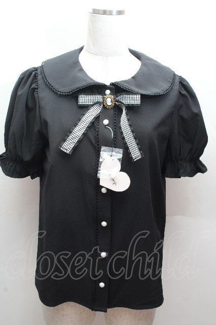 Ank Rouge / カメオリボンクラシカルブラウス 黒 S-26-04-12-031-CA-BL-HR-ZS