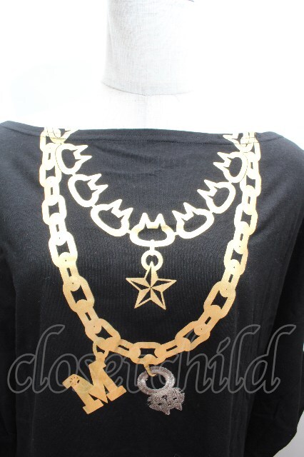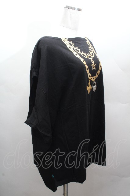 MINT NeKO / プリントカットソー 黒xゴールド S-26-04-12-034-HN-TO-AS-ZS [2100020000032904-S-26-04-12-034-HN-TO-AS-ZS]