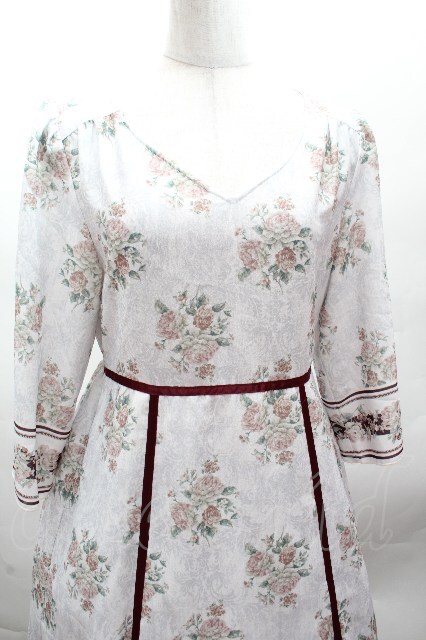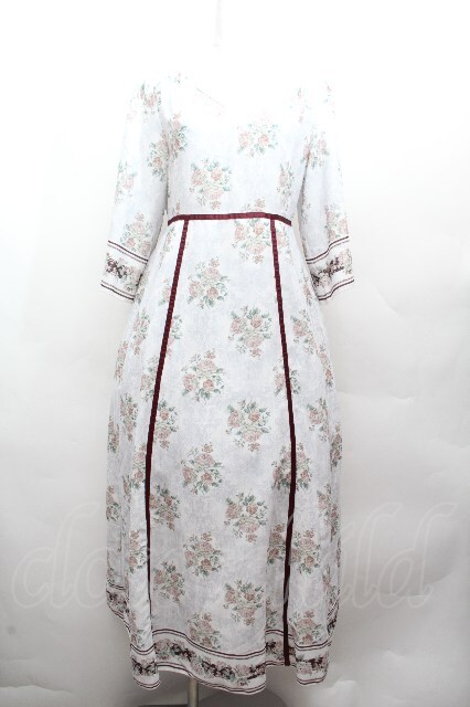 axes femme / ウォールオーナメント柄ワンピース 白xグレー S-26-04-12-040-AX-OP-AS-ZS