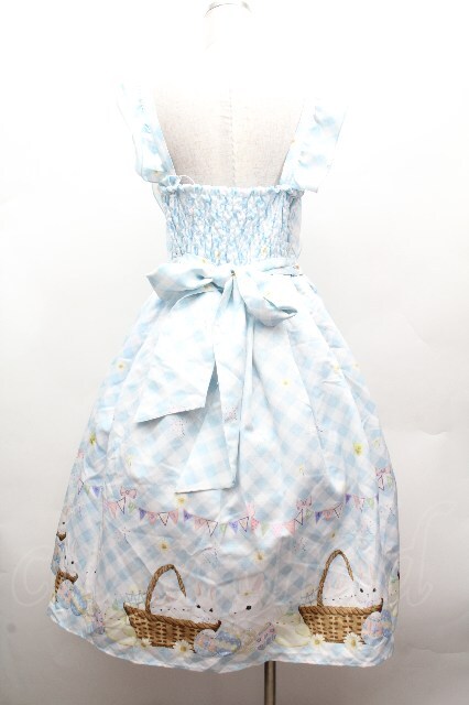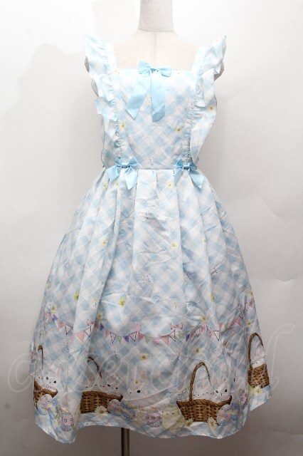 axes femme kawaii / イースター柄ジャンスカ サックス S-26-04-12-048-AX-OP-HR-ZS