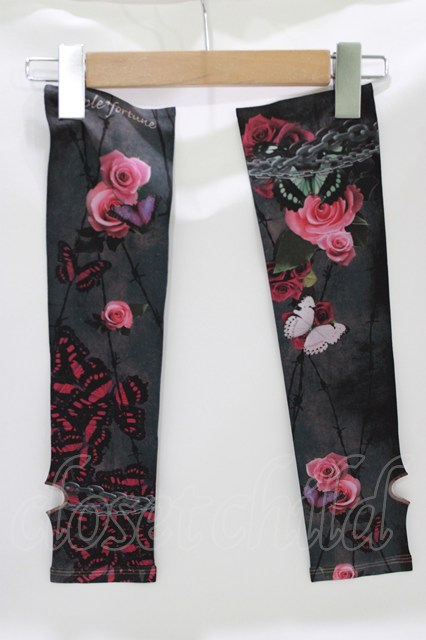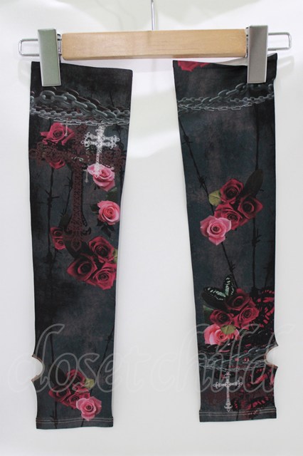 Triple fortune / プリントアームカバー 黒×レッドローズ H-26-04-17-042-EL-ZA-KB-ZH