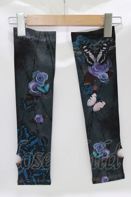 Triple fortune / プリントアームカバー 黒×ブルーローズ H-26-04-17-043-EL-ZA-KB-ZH
