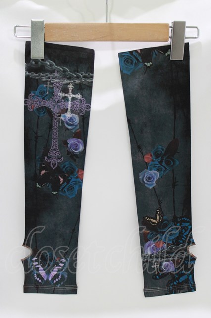 Triple fortune / プリントアームカバー 黒×ブルーローズ H-26-04-17-043-EL-ZA-KB-ZH [2100030000075798-H-26-04-17-043-EL-ZA-KB-ZH]