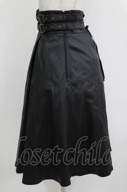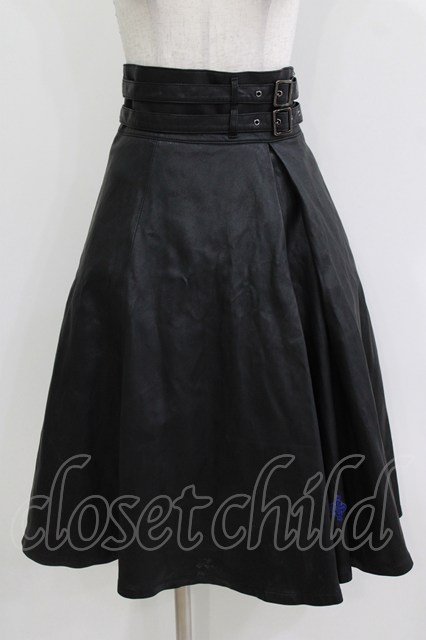 Moi-meme-Moitie / クロスローズ合皮スカート 黒×青 H-26-04-17-022-MO-SK-AK-ZH [2100030000091947-H-26-04-17-022-MO-SK-AK-ZH]