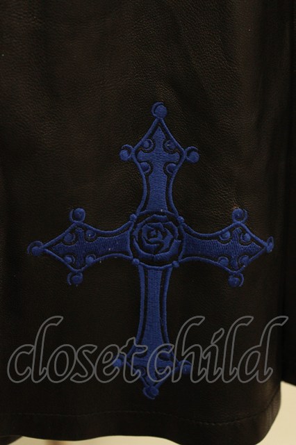 Moi-meme-Moitie / クロスローズ合皮スカート 黒×青 H-26-04-17-022-MO-SK-AK-ZH