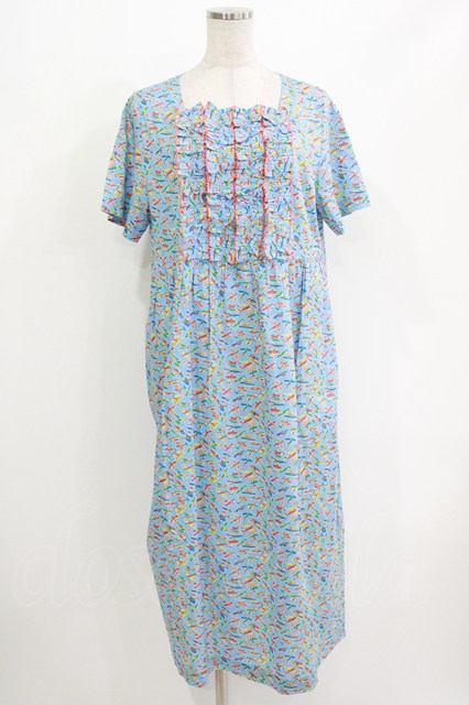 Jane Marple Dans Le Salon / Miles' Adventureフリルトリムドレス M スカイブルー×マンダリン H-26-04-17-025-JM-OP-KB-ZH [2100030000039913-H-26-04-17-025-JM-OP-KB-ZH]