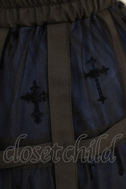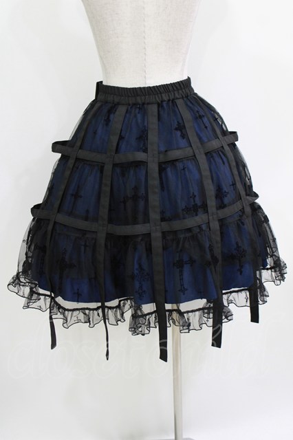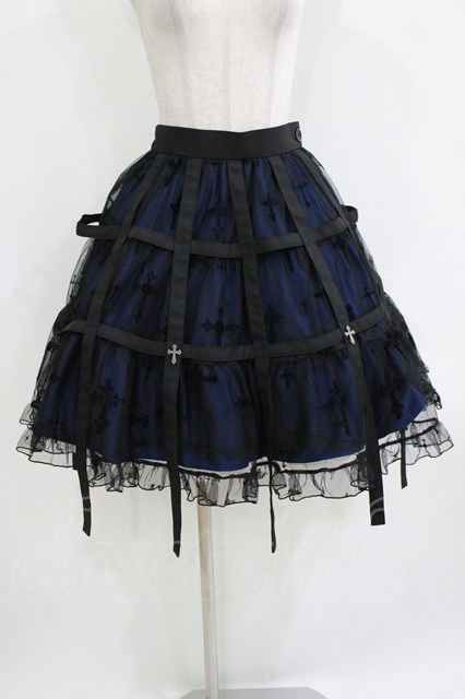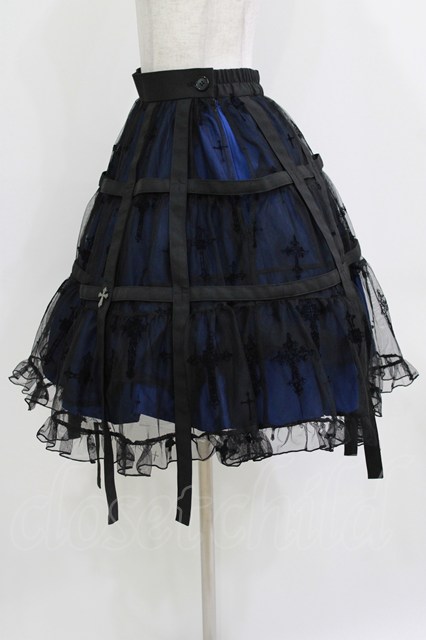 Moi-meme-Moitie / 十字架フロッキー鳥籠スカート 黒×青 H-26-04-17-009-MO-SK-AK-ZH