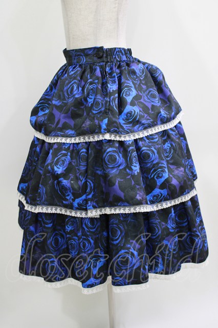 Moi-meme-Moitie / 青薔薇3段ティアードスカート F ブルー H-26-04-17-010-MO-SK-AK-ZH [2100030000091944-H-26-04-17-010-MO-SK-AK-ZH]