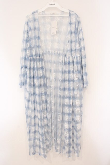 axes femme / チェック柄レースロングカーディガン サックス×シロ O-26-04-13-050-AX-TO-IG-OS [2100080000079169-O-26-04-13-050-AX-TO-IG-OS]
