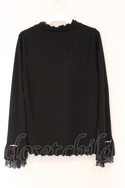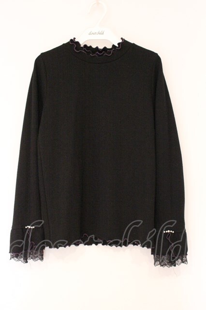 axes femme / 袖レース配色メローフリルプルオーバー クロ×パープル O-26-04-13-059-AX-TO-IG-OS