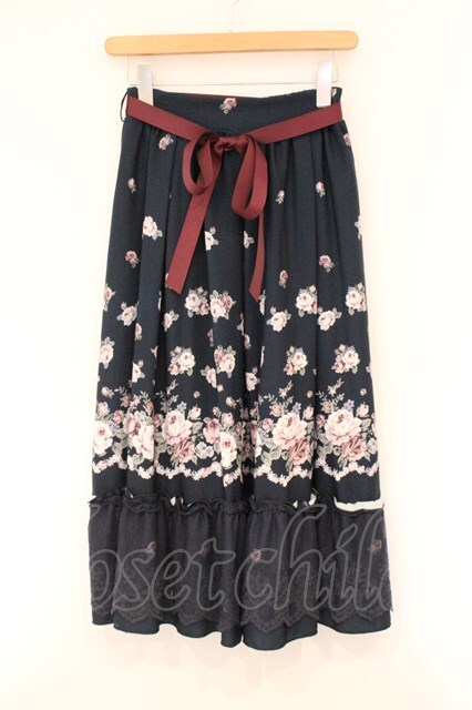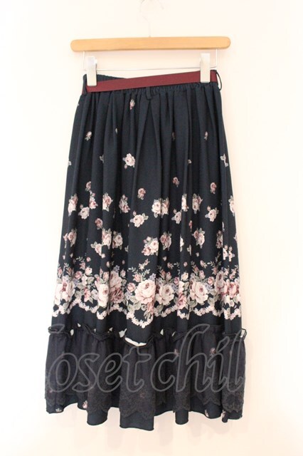 axes femme / パネル花柄フレアスカート ネイビー O-26-04-13-042-AX-SK-IG-OS