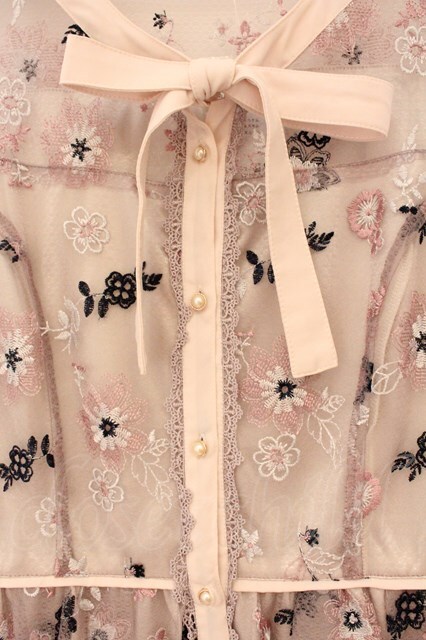axes femme / 総レースボウタイワンピース ピンク O-26-04-13-054-AX-OP-IG-OS [2100080000079164-O-26-04-13-054-AX-OP-IG-OS]