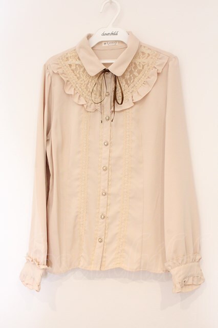 axes femme / デコルテレース切替ブラウス L 生成り O-26-04-13-034-AX-BL-IG-OS