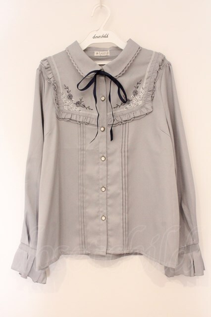 axes femme / 襟付刺繍ブラウス L グレー O-26-04-13-035-AX-BL-IG-OS