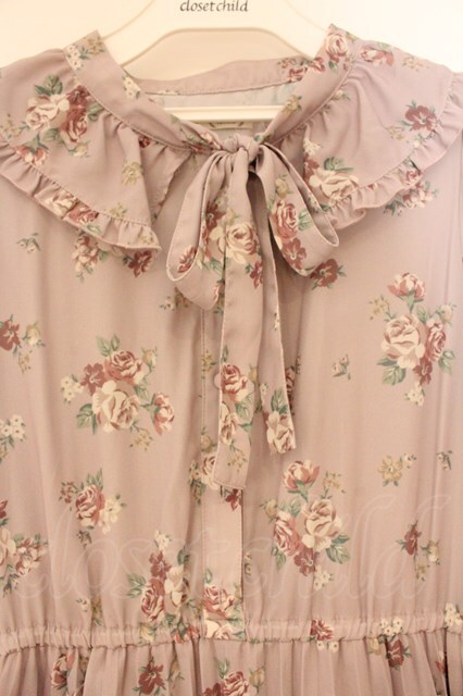 axes femme / 花柄ボウタイカラーフリルプリーツワンピース M ピンク O-26-04-13-071-AX-OP-IG-OS