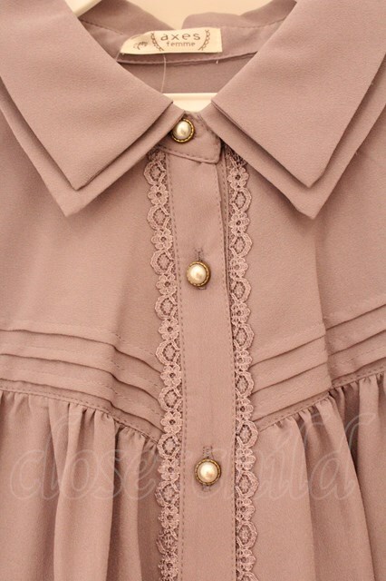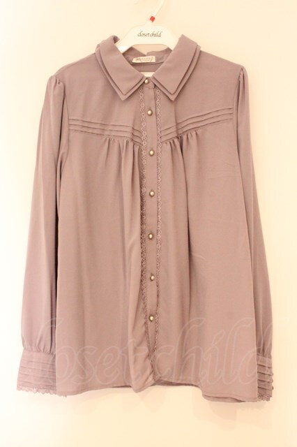 axes femme / カメオ付ピンタックブラウス L パープル O-26-04-13-033-AX-BL-IG-OS