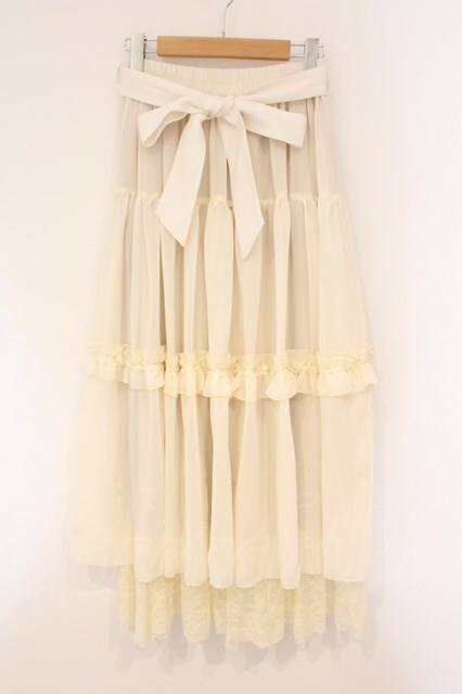 axes femme / 裾レースティアードスカート F アイボリー O-26-04-13-044-AX-SK-IG-OS