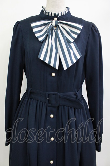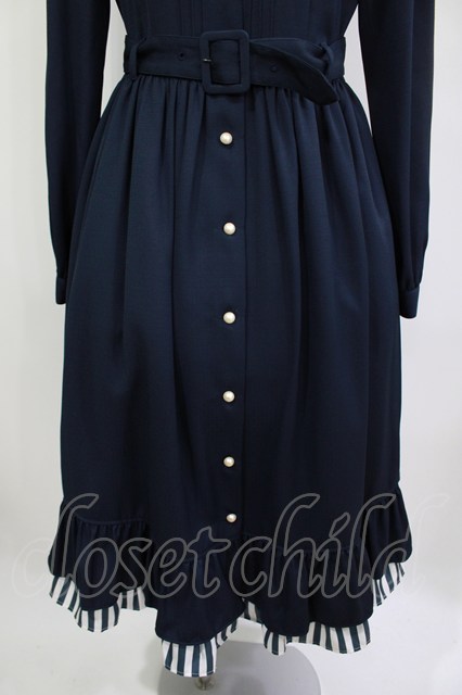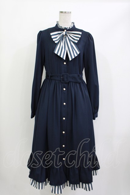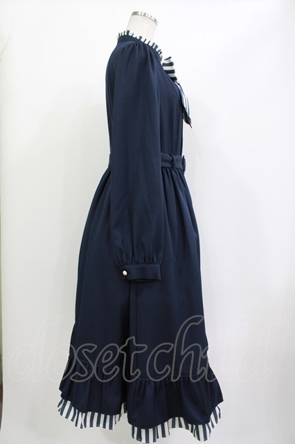 Melody BasKet / ストライプマドモアゼルドレス L ネイビー H-26-04-18-1022-LO-OP-KB-ZH
