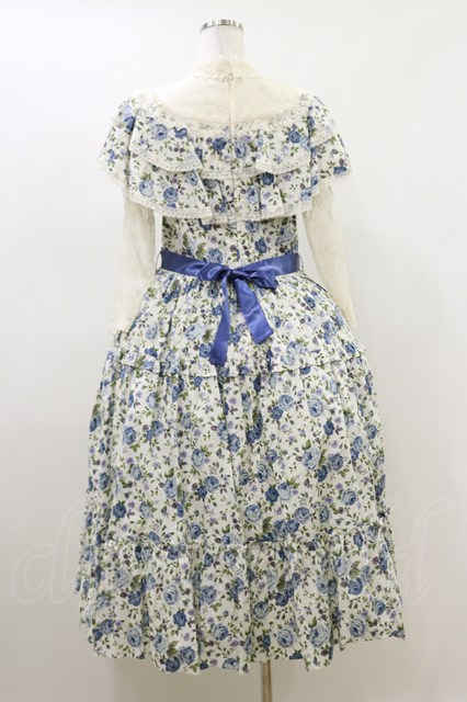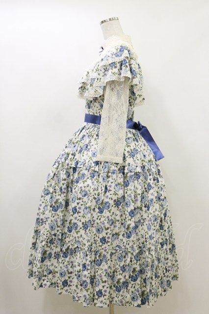 Innocent World / 薔薇と蕾のショール風ワンピース L 薔薇柄ブルー/Rose pattern Blue H-26-04-18-021-IW-OP-NS-ZH