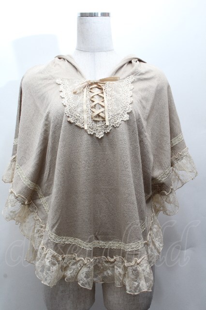 axes femme / ファーフード付きニットポンチョ ブラウン S-26-04-14-029-AX-TO-HR-ZS