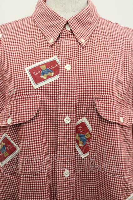 Karl Helmut / くまさんワッペン&ギンガムチェック厚手シャツ M 赤X白チェック I-26-04-12-006-EL-BL-SA-ZI