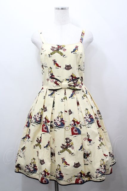Emily Temple cute / ワンダーランドウエストリボンノースリーブワンピース オフシロ I-26-04-12-052-ET-OP-TE-ZI