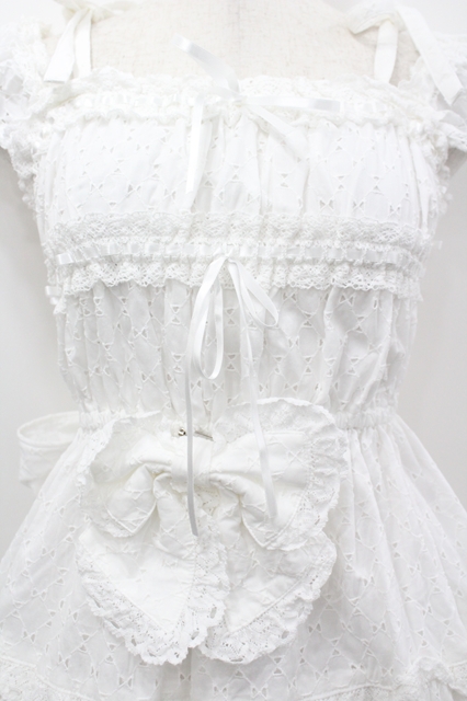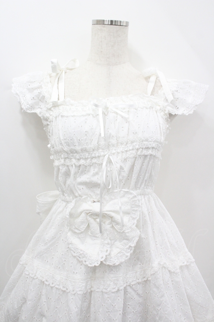 BABY,THE STARS SHINE BRIGHT / Innocent Ribbon Lace シャーリングジャンパースカート 白 I-26-04-12-037-BA-OP-SA-ZI