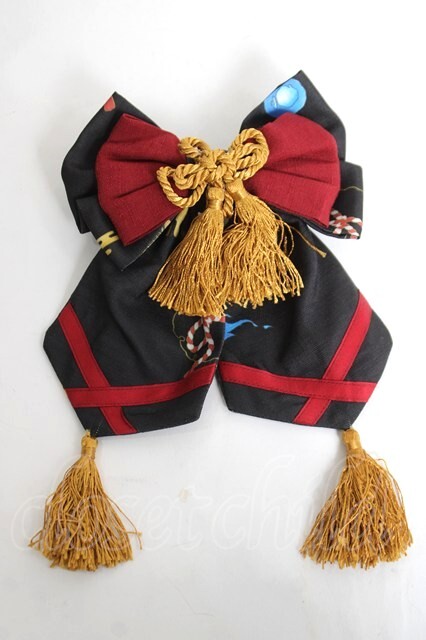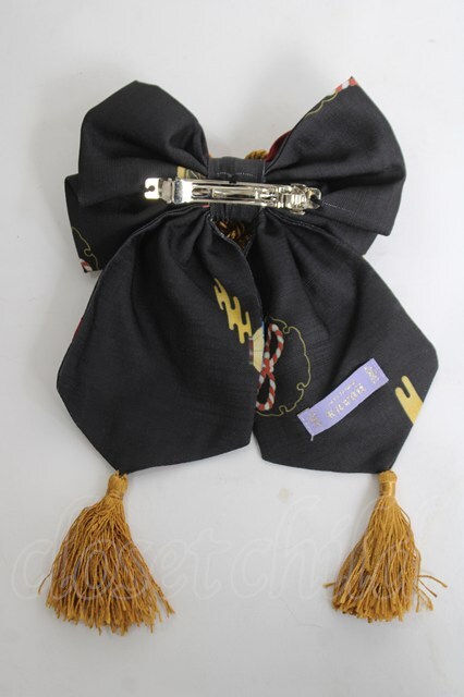 axes femme kawaii / 彼岸の白狐会柄リボンバレッタ 黒 Y-26-04-17-019-AX-ZA-SZ-ZY [2100070000068275-Y-26-04-17-019-AX-ZA-SZ-ZY]