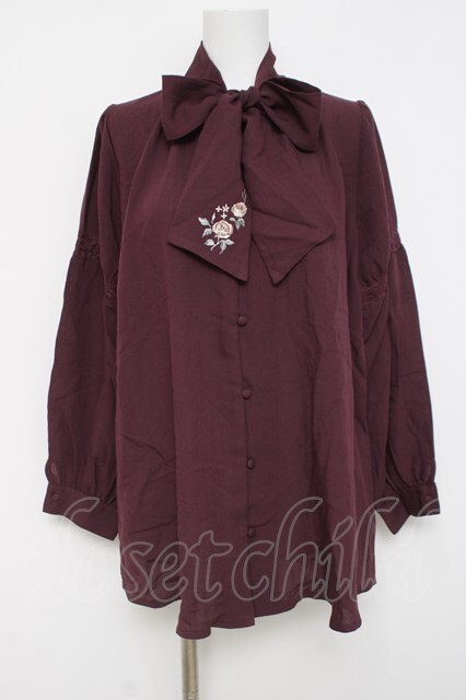 axes femme / 刺繍入りリボンロングブラウス ワイン Y-26-04-17-062-AX-BL-SZ-ZY [2100070000068478-Y-26-04-17-062-AX-BL-SZ-ZY]