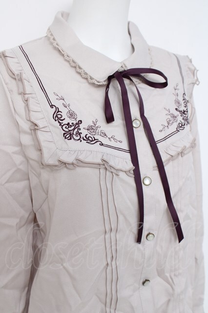 axes femme / 襟付刺繍ブラウス L グレージュ Y-26-04-17-064-AX-BL-SZ-ZY [2100070000068407-Y-26-04-17-064-AX-BL-SZ-ZY]