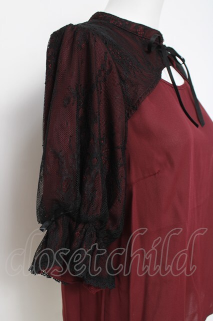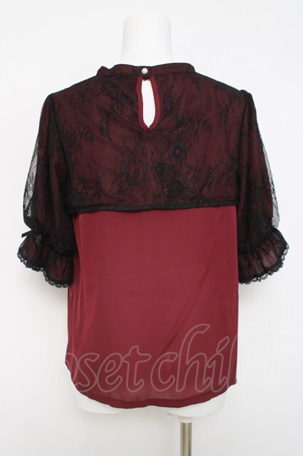 axes femme kawaii / レース重ね半袖ブラウス M ワイン Y-26-04-17-073-AX-BL-SZ-ZY