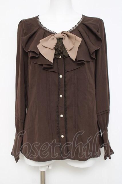 axes femme / シャボ付きラッフルブラウス M 茶 Y-26-04-17-074-AX-BL-SZ-ZY [2100070000068545-Y-26-04-17-074-AX-BL-SZ-ZY]