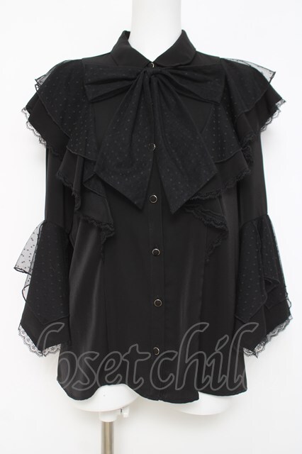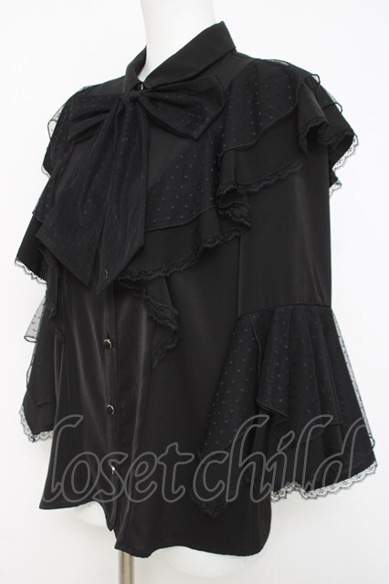 axes femme / ドットチュールリボン姫袖ブラウス F 黒 Y-26-04-17-080-AX-BL-SZ-ZY [2100070000068510-Y-26-04-17-080-AX-BL-SZ-ZY]