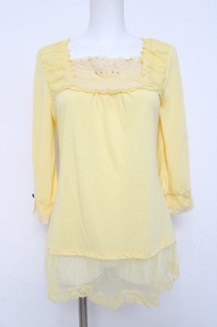 axes femme / レーシー七分丈インナープルオーバー M イエロー Y-26-04-17-101-AX-TO-SZ-ZY