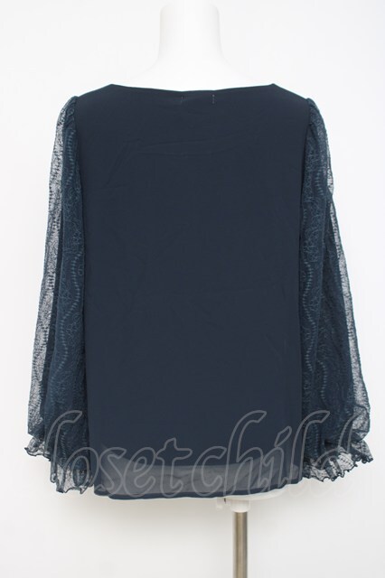 axes femme / 袖レースプルオーバー M 紺 Y-26-04-17-110-AX-TO-SZ-ZY
