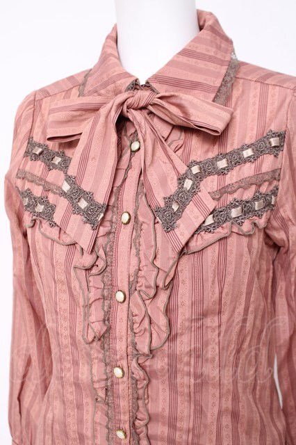 axes femme / ボウタイ付きストライプブラウス M ピンク Y-26-04-17-111-AX-BL-SZ-ZY