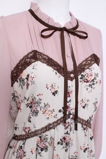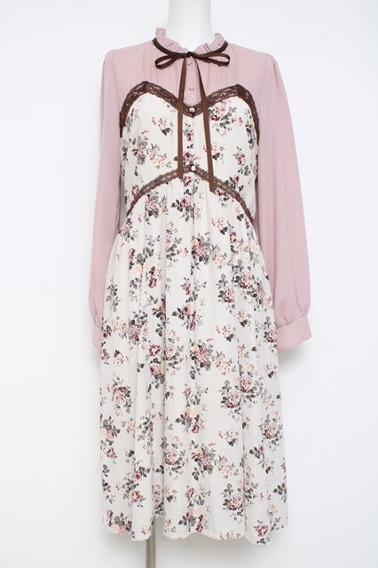 axes femme / ビスチェ切替バラ柄ワンピース M ピンク Y-26-04-17-155-AX-OP-SZ-ZY
