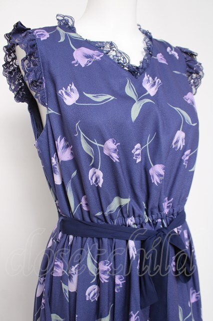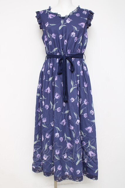 axes femme POETIQUE / チューリップ柄ワンピース 紺 Y-26-04-17-164-AX-OP-SZ-ZY