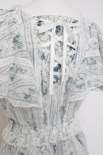 axes femme / 花ストライプ柄チュールワンピース シロ Y-26-04-17-166-AX-OP-SZ-ZY