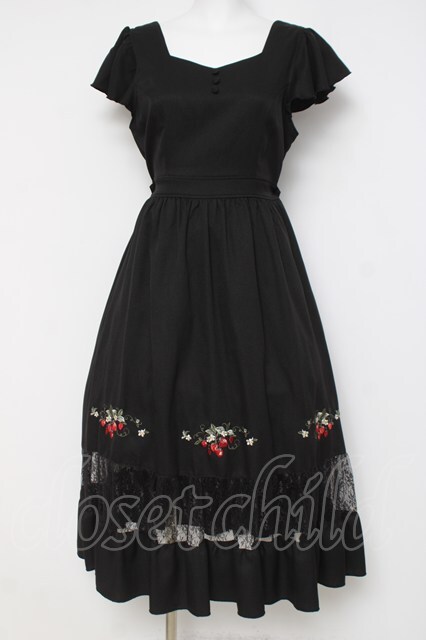 axes femme POETIQUE / ストロベリー刺繍ワンピース 黒 Y-26-04-17-173-AX-OP-SZ-ZY